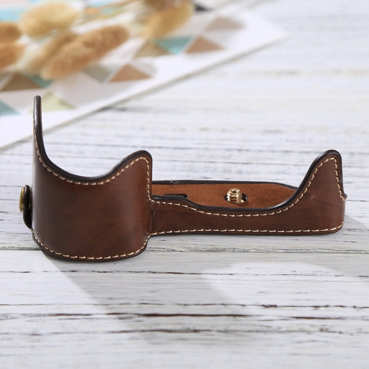 Avelena | 1/4 inch Draad PU Lederen Camera Halve Case Basis voor Sony Alpha 6100 / A6100 (Koffie)