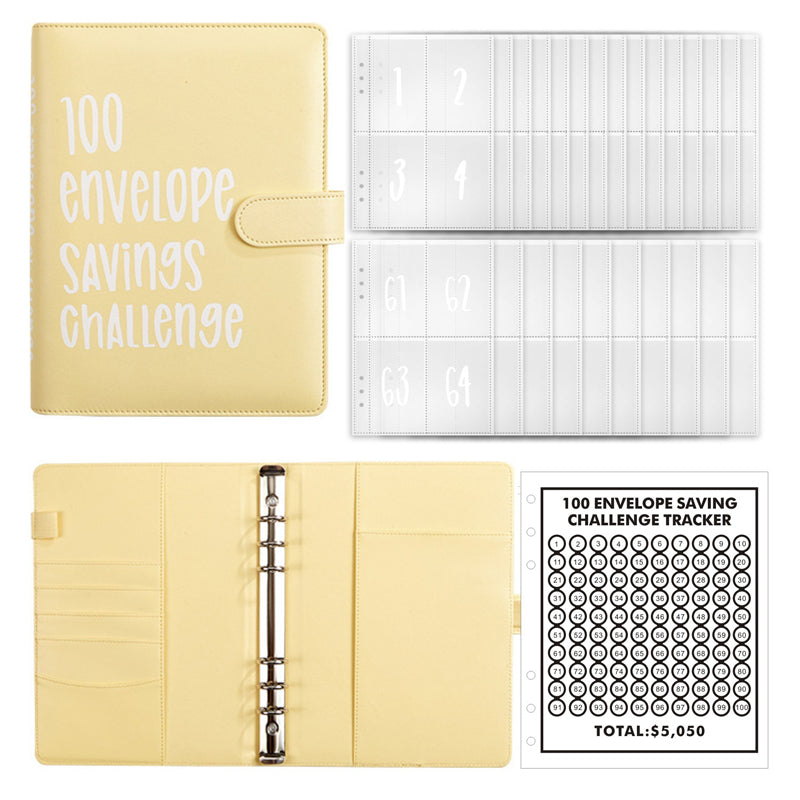 Organisiertes Sparen - Zielgenauer Ansatz: Dieser Ordner wurde erstellt, um Ihnen zu helfen, Ihr Sparen mit der beliebten 100-Umschläge-Herausforderung effektiv zu planen und zu überwachen, wodurch regelmäßige Spargewohnheiten gefördert werden.