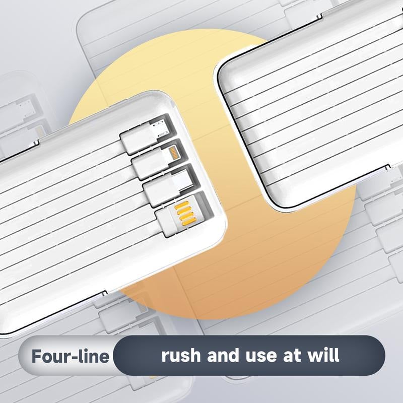 Alles-in-Einem Bequemlichkeit: Diese Powerbank kommt mit vier integrierten Kabeln (Micro, Lightning, Type-C und USB) und bietet Ihnen alles Nötige für Ihre Reisen. Keine lästigen Ladegeräte mehr – einfach dieses handliche Gerät mitnehmen und sofort bereit sein, Ihre Geräte aufzuladen.