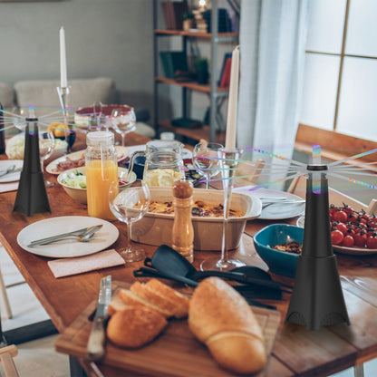 - Effektiver Fliegenabwehr-Ventilator: Dieser Ventilator mit seinen reflektierenden Designs kreiert eine Zone auf Ihrem Tisch, die für Fliegen unangenehm ist und verhindert, dass lästige Fliegen oder Insekten an Ihr Essen gelangen. Achten Sie darauf, dass Ihr Essen im optimalen Bereich des Ventilators platziert ist, um die besten Ergebnisse zu erzielen.