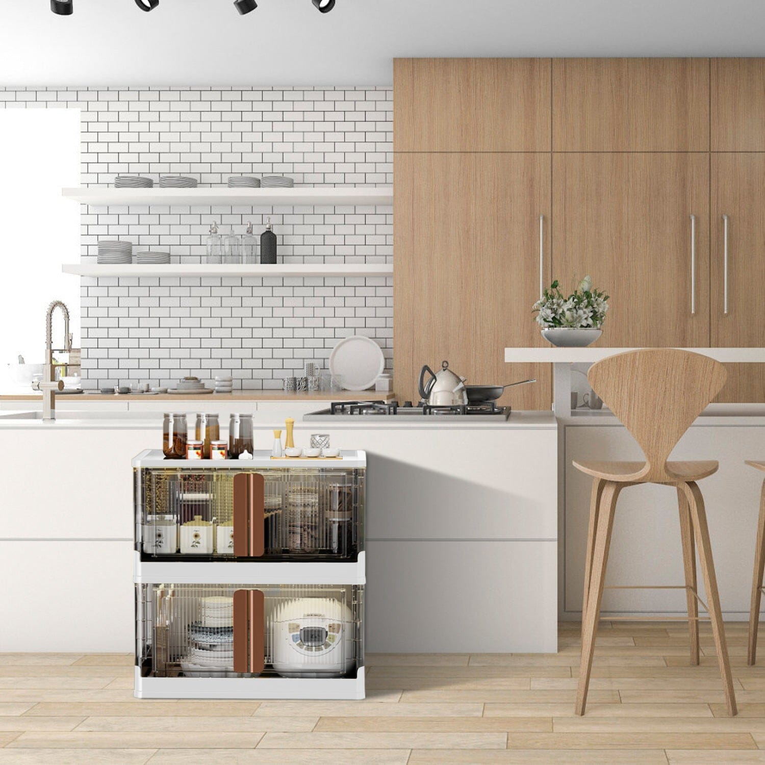 - Attraktives Design: Diese Kunststoffaufbewahrungsbehälter zur Organisation im Haushalt bestehen aus PP+HIPS+PS. Die halbtransparenten vorderen Türen der Behälter verfügen über ein modernes Design und helfen dabei, Ihre Umgebung ordentlich, sauber und funktional zu halten.