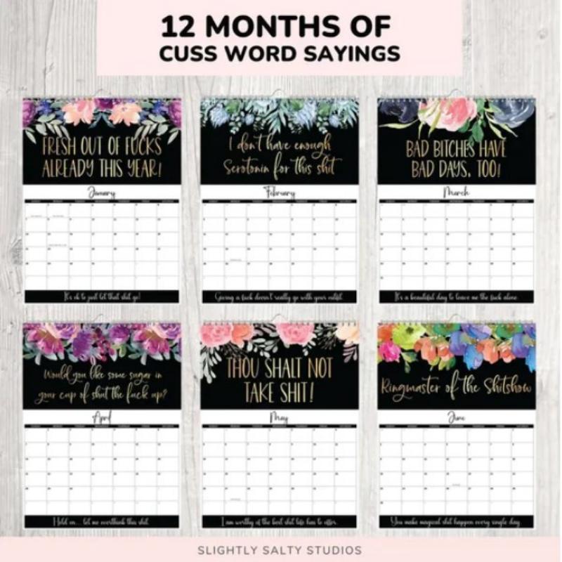 - 😇 Dieser Wandkalender 2024 enthält ZWEI amüsante Fluch-Zitate für jeden Monat im Jahr 2024.