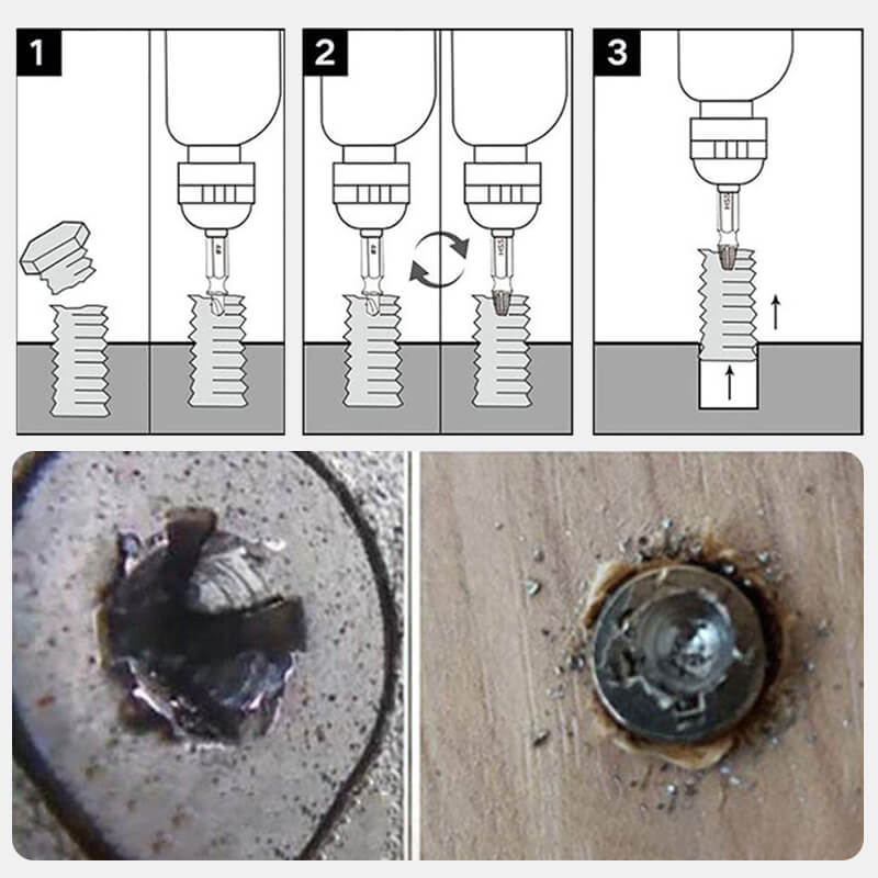 Effektiv entfernen Sie selbst die hartnäckigsten Schrauben und Bolzen, die abgerissen, beschädigt, festgefahren, rostig oder lackiert sind. Geeignet für Innensechskantschrauben, Maschinenschrauben, Holzschrauben, Holzschrauben, Sechskantschrauben, Blechschrauben und viele andere Schrauben.