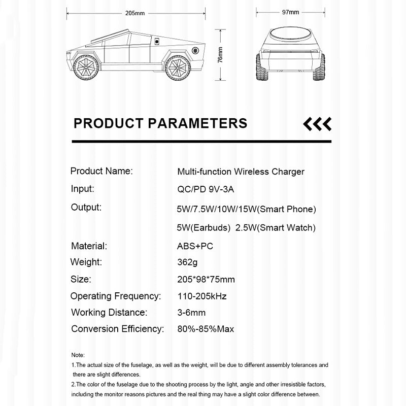 - Exquisit designtes Lkw-Modell: Inspiriert von dem markanten, kantigen Stil des Cybertrucks, ist dieses Ladegerät mehr als nur ein Gadget — es ist eine funktionale mechanische Skulptur.