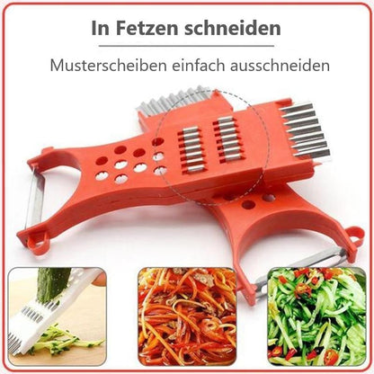 Einfach zu bedienen: Der 5-in-1 Schäler ist ein essenzielles Werkzeug in Ihrer Küche – ob zum Schälen, Zerschneiden, Schneiden oder Zerkleinern von Obst und Gemüse. Er ist extrem praktisch und hilft Ihnen, wertvolle Zeit zu sparen.
