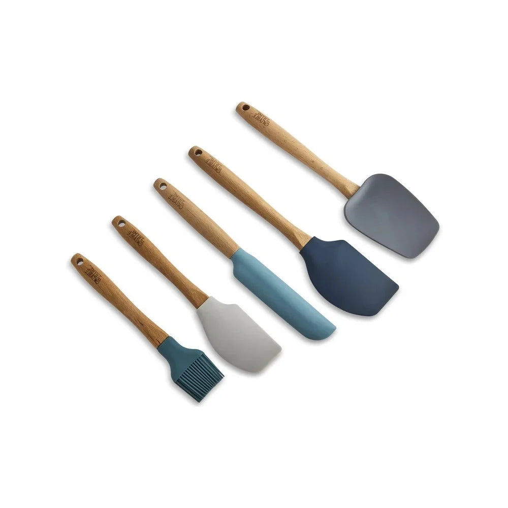 - 5-teiliges Silikonutensilset mit Buchenholzgriffen