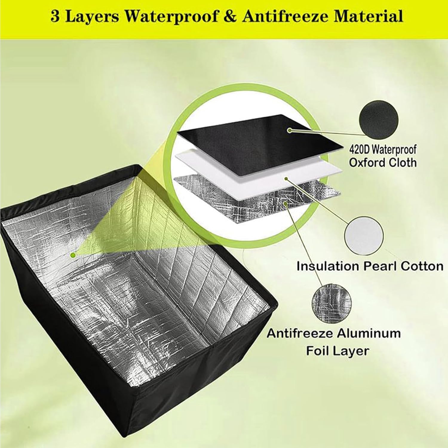 Diese Abdeckung aus Oxford-Stoff ist dreilagig konzipiert und bietet eine wasserdichte Außenschicht, stoßdämpfende Perlenbaumwollisolierung sowie eine wärmereflektierende Innenschicht aus Aluminium, um Kälte, Regen, Staub und UV-Strahlen effektiv abzuwehren. Die rutschfesten Doppelriemen und stabilen Schnallen garantieren, dass sie sicher sitzt und sich bei starkem Wind nicht verschiebt. Ihr durchgehendes Design sorgt für vollumfänglichen Schutz, minimiert Wärmeverluste im Winter und erhält die Robustheit auch bei harschen Sommerbedingungen. Sie ist ideal für die Nutzung auf Terrassen, in Kellern, Garagen, Wohnmobilen und anderen Außenbereichen und lässt sich schnell und ohne zusätzliches Werkzeug oder Demontage anbringen.