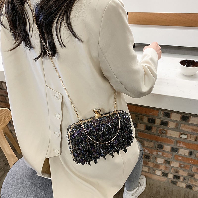 Bereichern Sie Ihre anspruchsvolleren Looks mit dieser Clutch und setzen Sie einen funkelnden Akzent