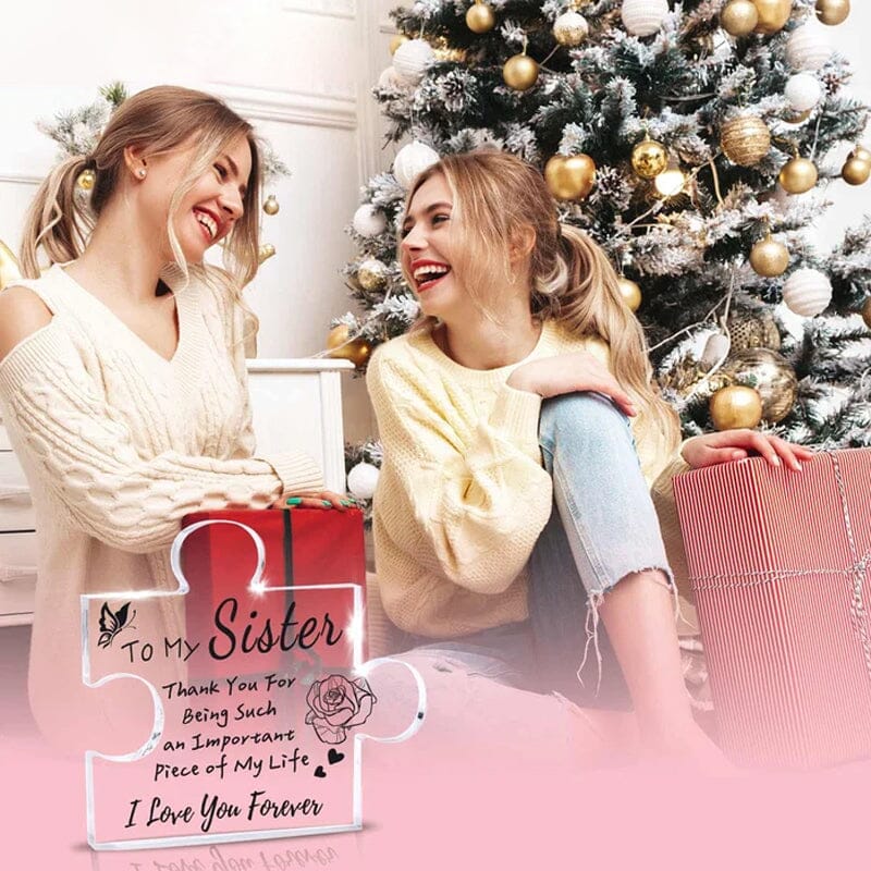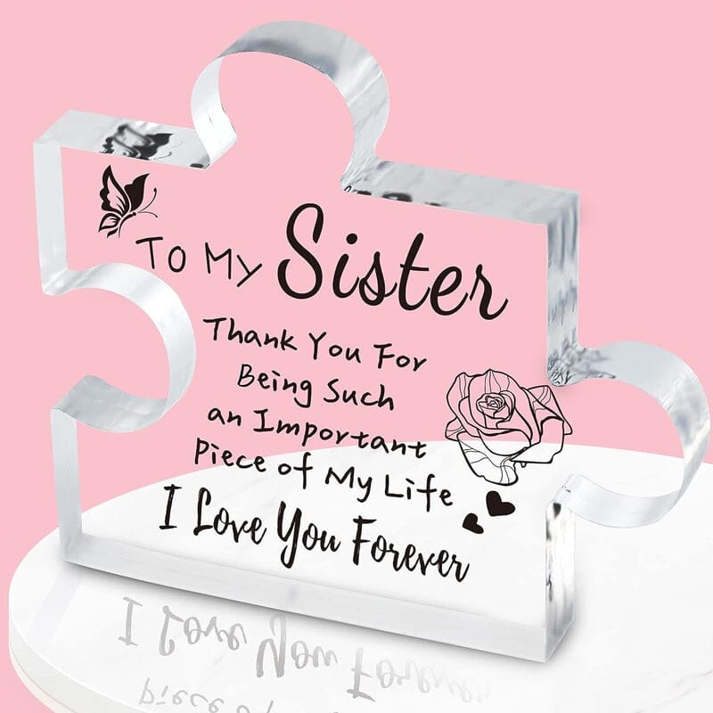 Dieses Acryl-Puzzle-Element wurde besonders als bedeutungsvolles Geschenk für Schwestern von Brüdern entworfen. Es verkörpert die Wertschätzung, Unterstützung und Emotionen, die du für deine Schwester hegst, und eignet sich somit hervorragend für Geburtstagsfeiern, Schwesternschaftsfeiern oder einfach, um deine Liebe zu zeigen.