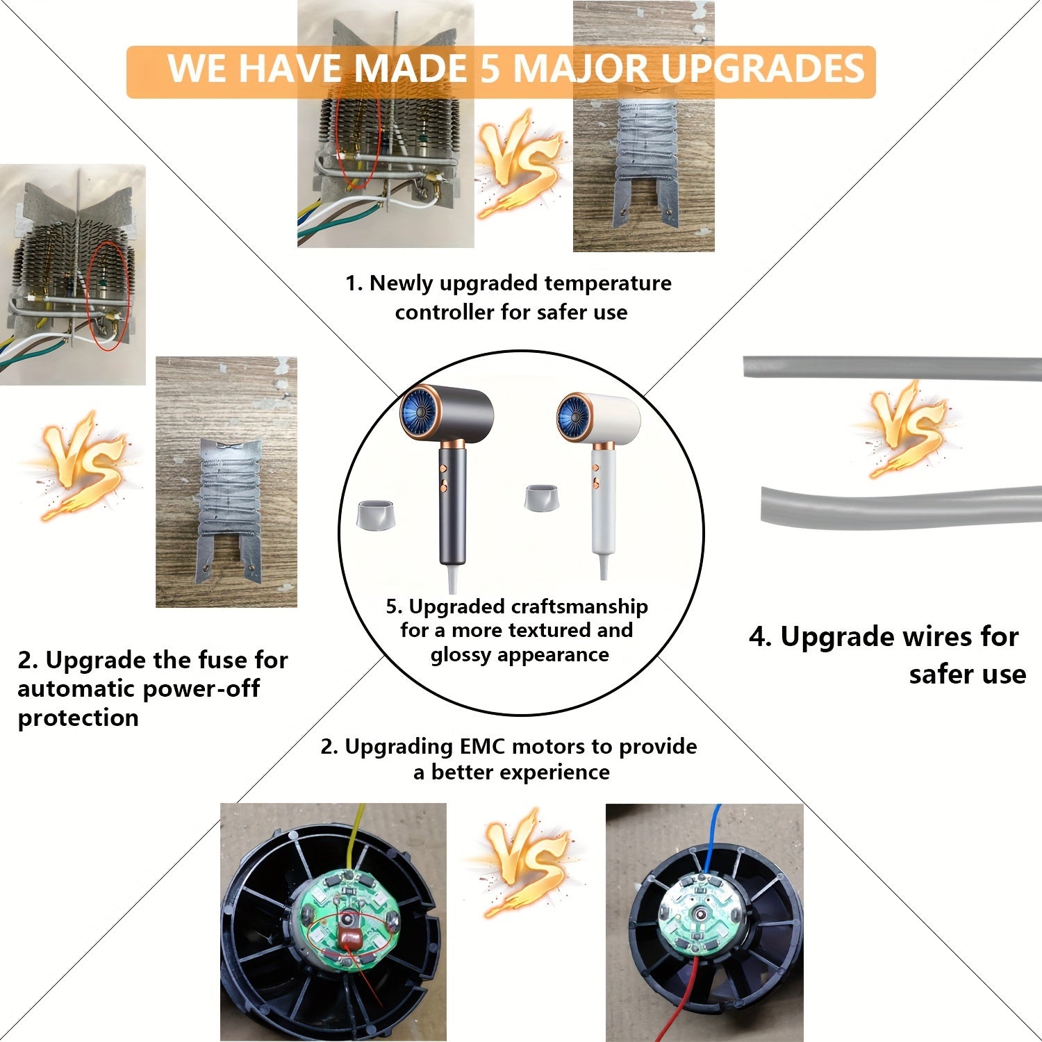 Herkömmliche Haartrockner sind oft laut, benötigen viel Zeit zum Trocknen und hinterlassen Ihr Haar frizzig. Viele Modelle kommen ohne präzise Aufsätze oder die Möglichkeit, einfach zwischen warmer und kalter Luft zu schalten, was eine bessere Kontrolle beim Styling behindert.