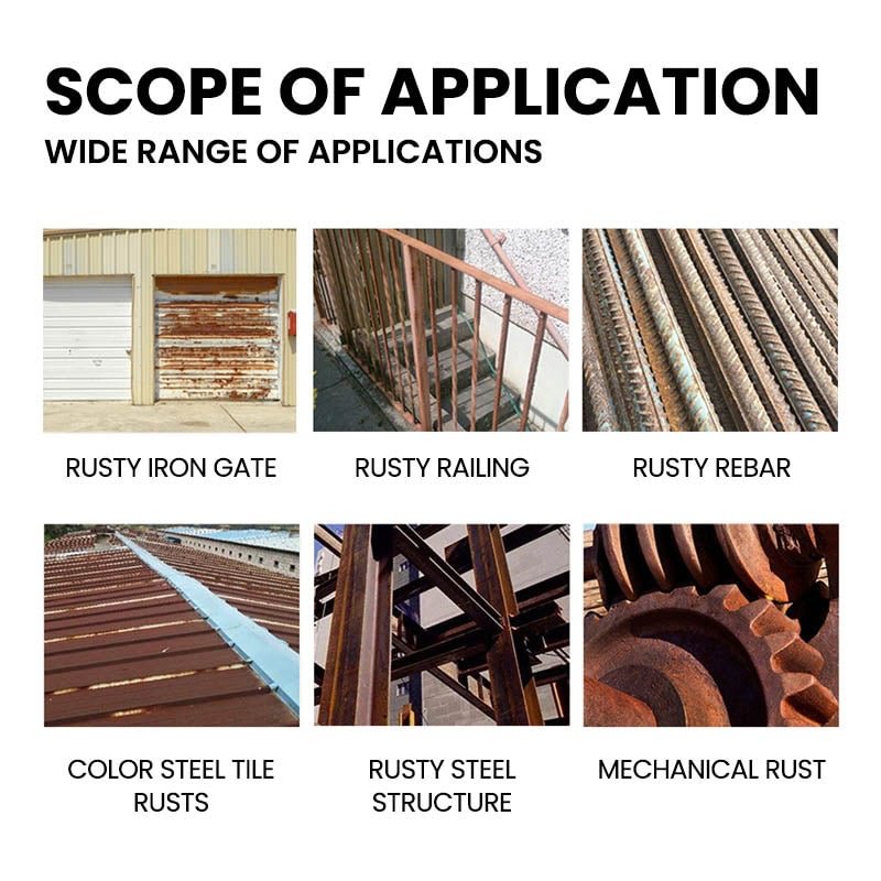 - [Schutz von Eisen- und Metalloberflächen]- Es entfernt effektiv Rost und stellt die originale Grundierungsfarbe von metallischen Objekten wieder her. Es belebt und schützt Eisen- und Metalloberflächen von Fahrzeugen, Rahmen, Mülleimern, Geräten, Geländern, Ketten usw.