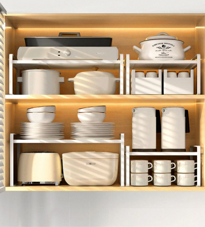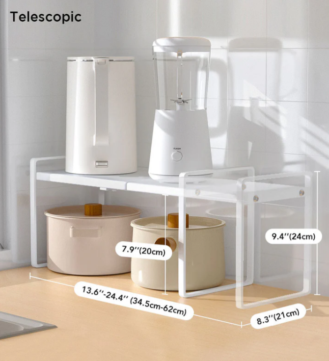 ✔ Angemessene Größe: Flexibel einstellbar, von 33 cm bis 62 cm in der Länge erweiterbar. ✔ Vielseitige Verwendung: Ideal für Küche, Vorratskammer, Badezimmer, Schlafzimmer, Büro und mehr, perfekt für die Aufbewahrung von Tellern, Schalen, Flaschen, Snacks, Büchern und Zeitschriften.