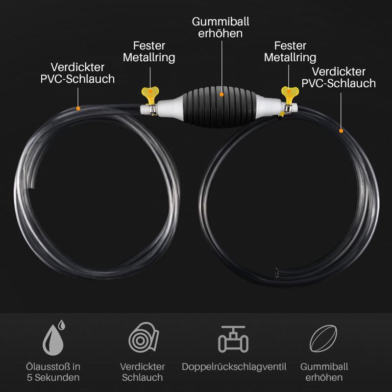 Ideal für den Notfall-Gastransfer. Es kann verschiedene Arten von Flüssigkeiten wie Benzin, Öl, Wasser, Bier usw. transportieren. Ein praktisches Werkzeug für viele Anwendungen im Haushalt.