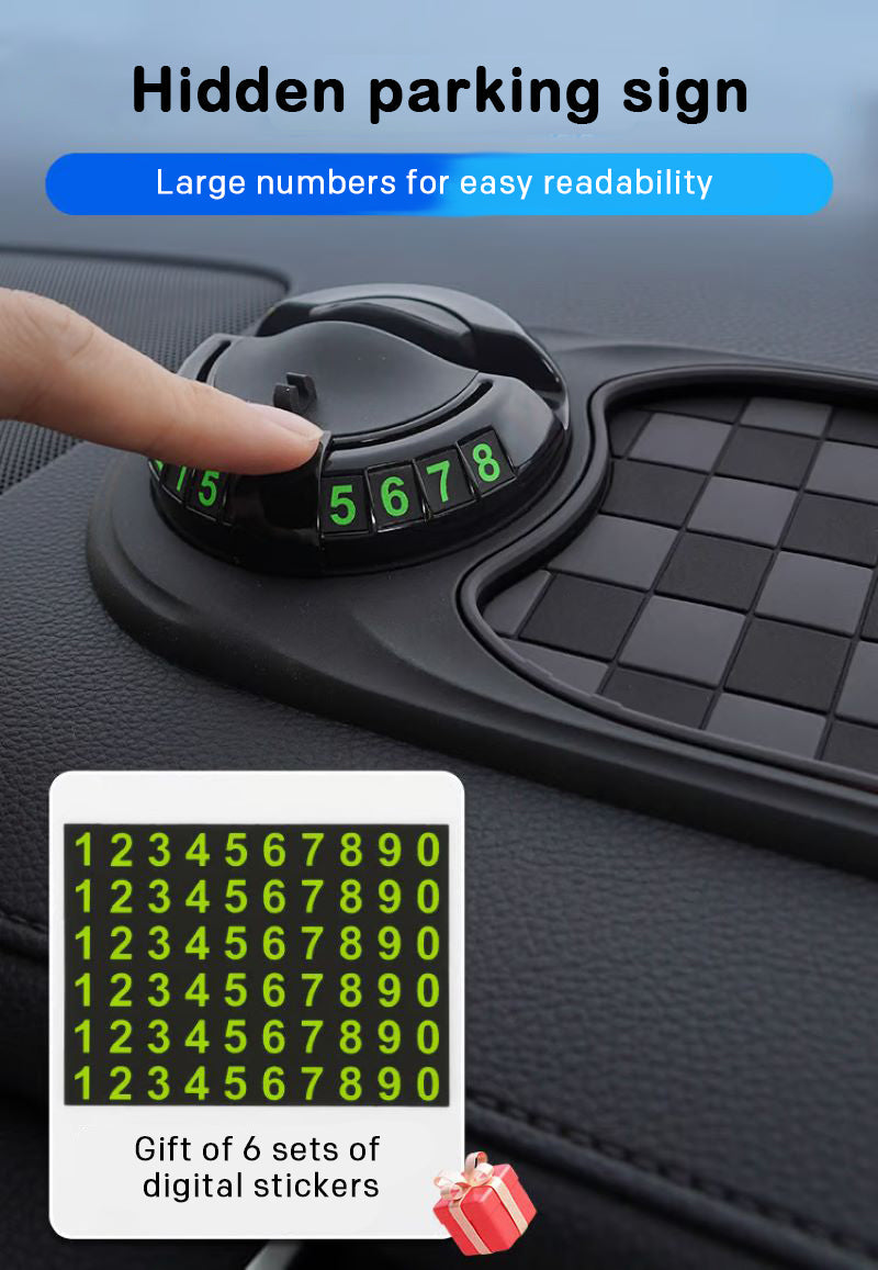 Handyhalterung + Parkzeichen + Anti-Rutsch-Matte + Ablagetisch – ein Produkt für die Lösung von vier bedeutenden Anliegen, verabschieden Sie sich von der Unordnung in Ihrem Auto!