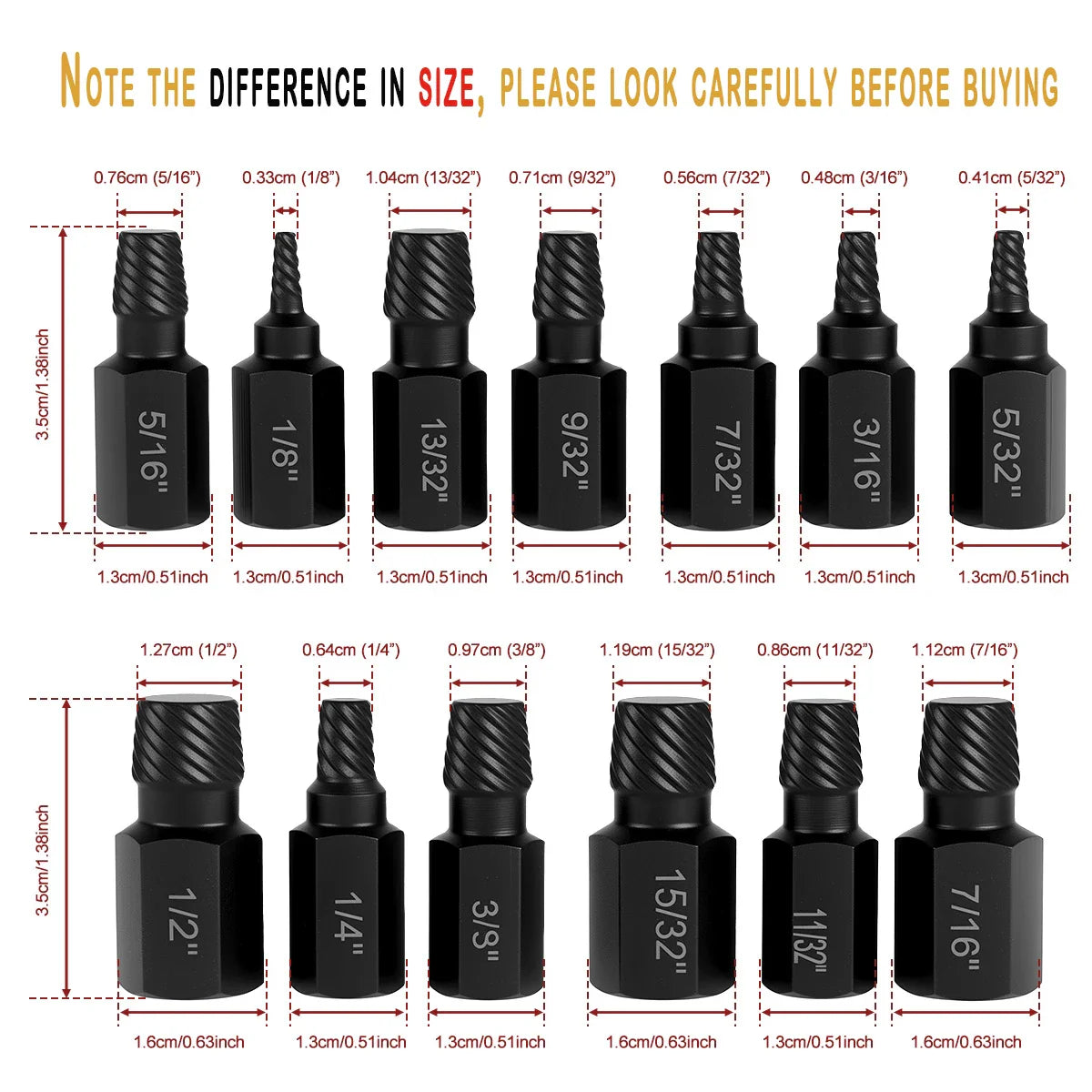 ● Einfach zu verwendender Schraubenausdreher-Satz, geeignet für sowohl Elektrowerkzeuge als auch Handwerkzeuge. Das hochdichte Spiral-Design hilft, abgebrochene Schrauben, Bolzen, Unterlegscheiben, Gewindestifte, Anschlussstücke, gewundene Rohre und Stifte schneller zu entfernen.