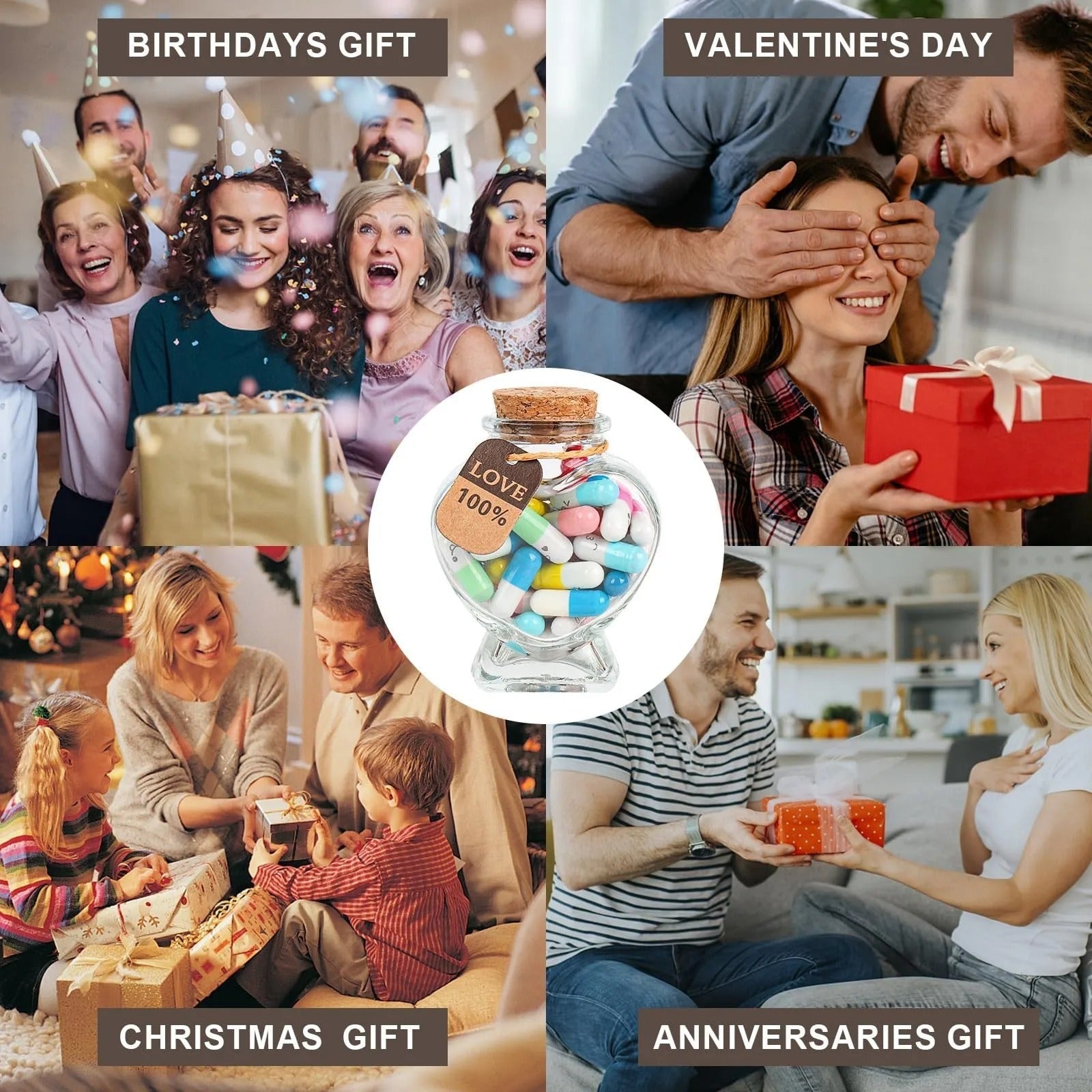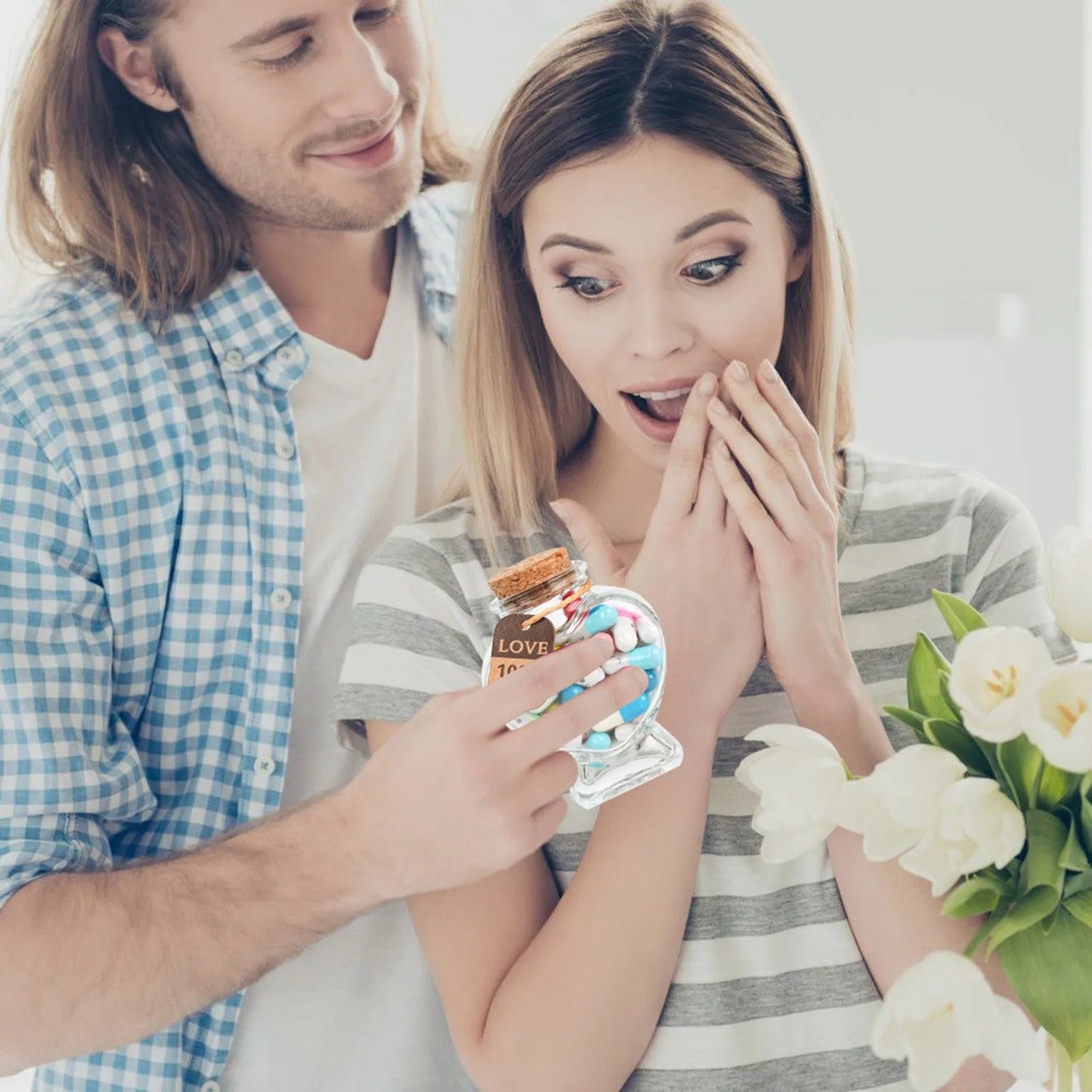 Die zwei Glasflaschen mit ihren bunten Kapseln sind perfekt für jeden Anlass, von Valentinstag bis Geburtstagen. Zeige deiner Familie, Freunden oder Partner, wie sehr du sie wertschätzt.