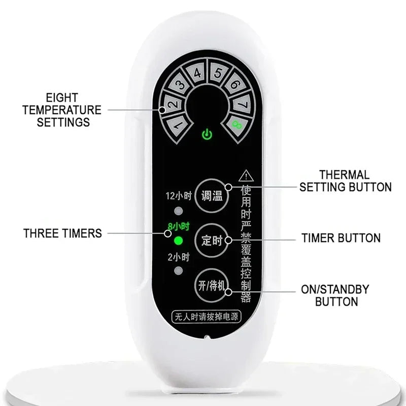 • Intelligente Fernbedienung mit acht Temperatureinstellungen für dieses elektrische Heizkissen