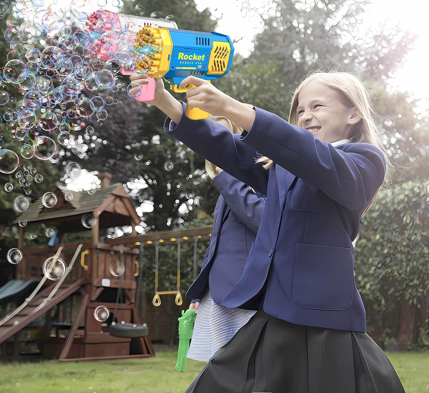 Mit 40 verbesserten Blasenlöchern und integrierten farbenfrohen LED-Lichtern produziert diese tragbare Seifenblasenmaschine tausende lebendige Blasen pro Minute. Ziehen Sie einfach am Abzug und genießen Sie eine faszinierende Mischung aus Lichtern und schwebenden Blasen, die perfekt für Spaß bei Tag oder Nacht ist.