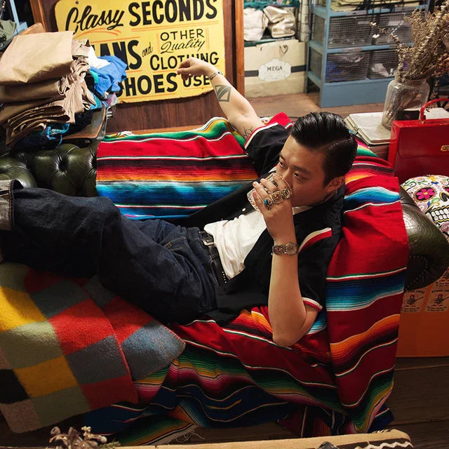Bringen Sie einen lebendigen Akzent in Ihren Raum mit dieser abwechslungsreichen mexikanischen Serape-Decke, die strahlende Regenbogenstreifen in einem klassischen, festlichen Design bietet. Diese Decke eignet sich hervorragend, um Ihrem Bett oder Ihrer Couch ein farbenfrohes Highlight zu verleihen und verleiht jedem Raum einen aufregenden, vom Südwesten inspirierten Touch. Sie ist leicht und gleichzeitig bequem, ideal zum Einkuscheln oder als auffälliges Deko-Element, das Wärme und Farbkraft ausstrahlt.
