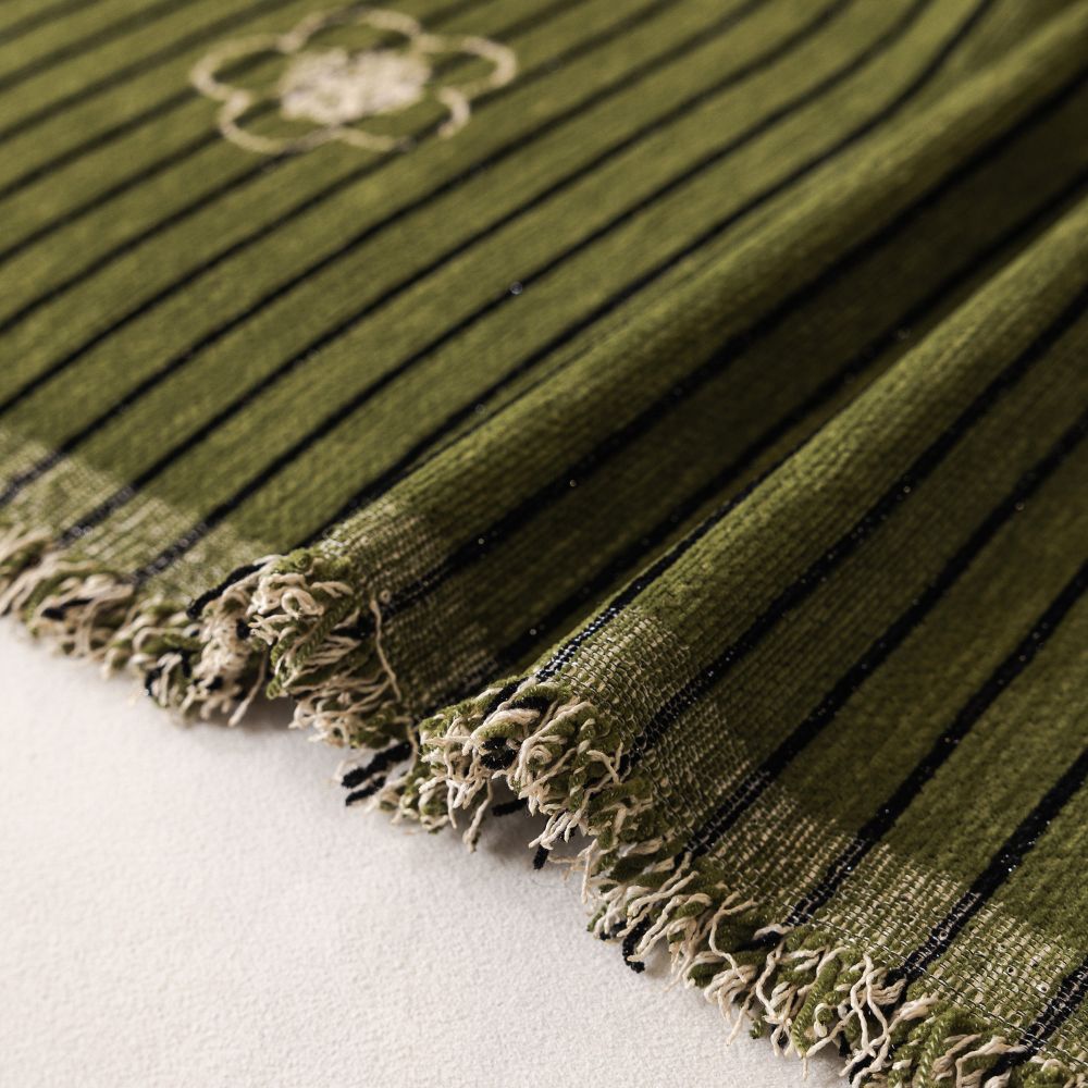 Fügen Sie Ihrem Zuhause mit dem Camellia Bloom Sofaüberzug einen eleganten Flair hinzu. Hergestellt aus atmungsaktivem Chenille, zeigt dieses vielseitige Produkt ein wunderschön gesticktes Camellia-Design zusammen mit einem gestreiften Jacquard-Muster. Es kann als Sofaüberzug, Möbel-Schutz oder kuschelige leichte Decke verwendet werden.