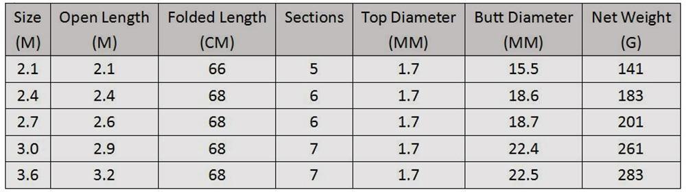 Diese Teleskop Angelrute aus Kohlenstofffaser ist perfekt für deinen nächsten Angelausflug. Du kannst aus verschiedenen Längen von 2,1 bis 3,6 Metern wählen.