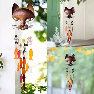 Das von Hand gefertigte Windspiel mit Metallkatze und recyceltem Glasfisch bereichert Ihren Außenbereich mit einem individuellen Kunstwerk. Die Verbindung von strapazierfähigem Metall und buntem Glas erzeugt nicht nur angenehme Klänge, sondern ist zudem ein attraktives Dekorationsstück.