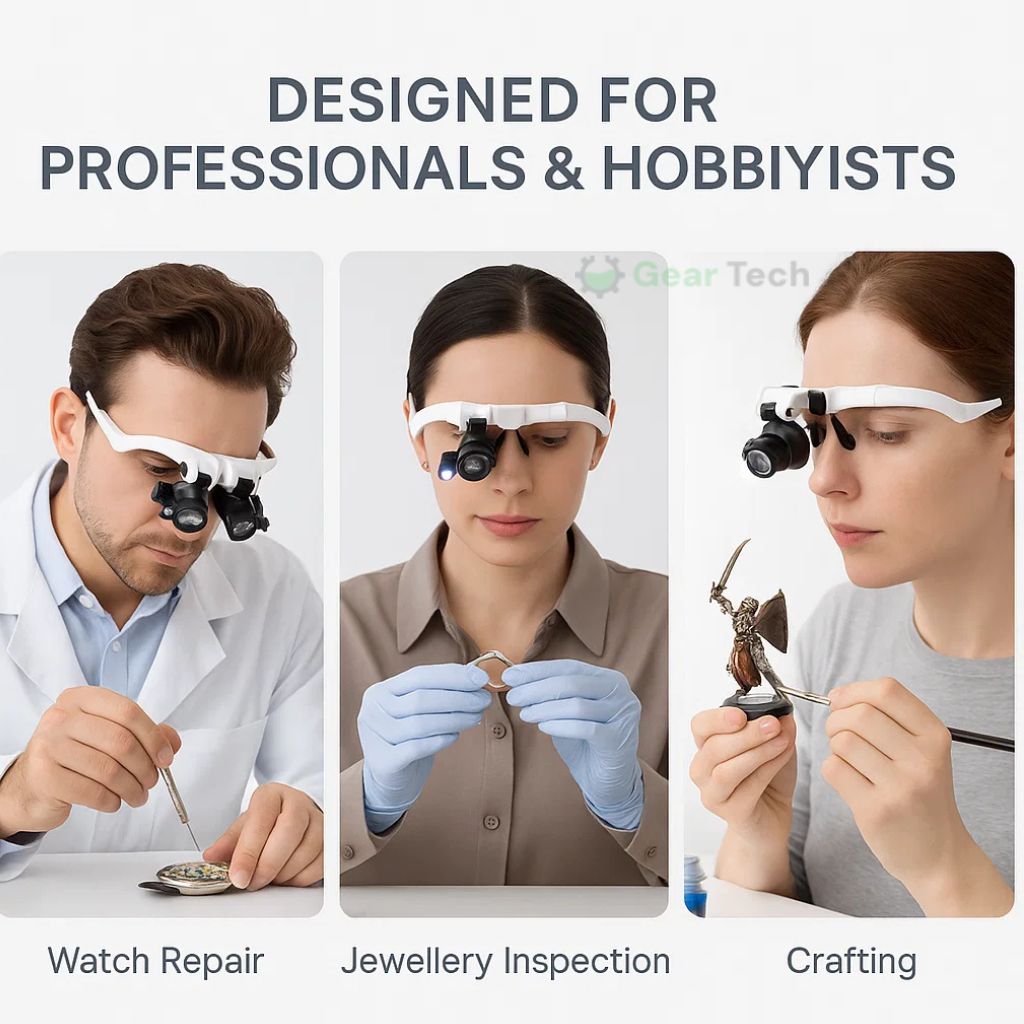 Erleben Sie präzise Arbeiten und höchsten Komfort mit dieser beleuchteten Vergrößerungsglas-Brille. Selbst bei schwacher Beleuchtung garantieren diese LED-unterstützten Linsen maximale Sichtbarkeit. Egal, ob Sie empfindliche Mechaniken reparieren, Schmuck untersuchen oder Miniaturen modellieren – mit dieser Brille wird jedes Detail klar sichtbar und die Augenbelastung wird reduziert. Dank der verstellbaren Linsen haben Sie verschiedene Vergrößerungsstufen zur Verfügung, die idealen Fokus für jede Aufgabe bieten.