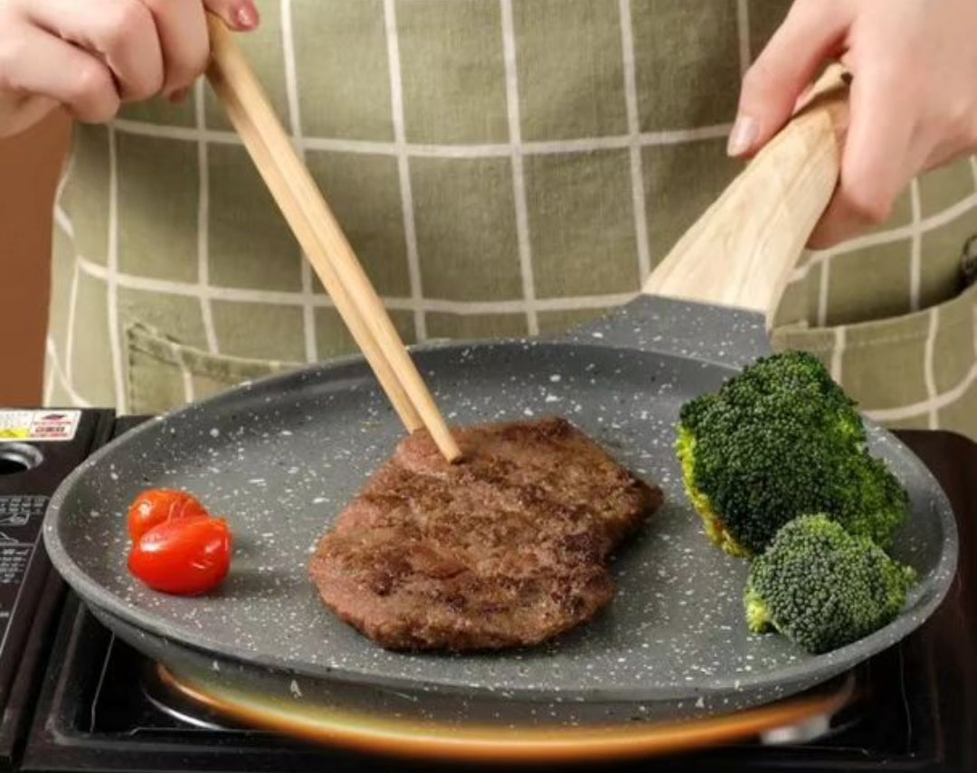 Stabile Chapati-/Crepe-Pfanne inklusive einem Bambus-Schaber