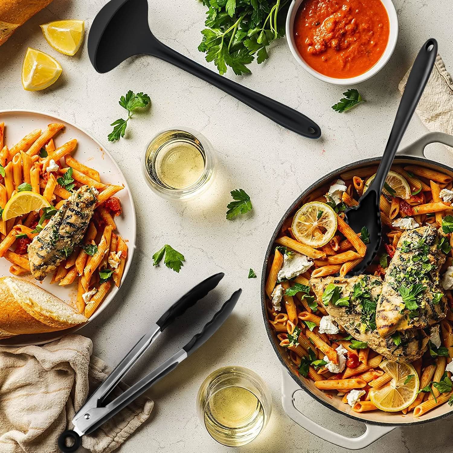 • Hitzebeständigkeit und Sicherheit: Die Silikon-Utensilien sind bis zu 230 °C hitzebeständig und schützen Ihre Töpfe und Pfannen vor Kratzern.