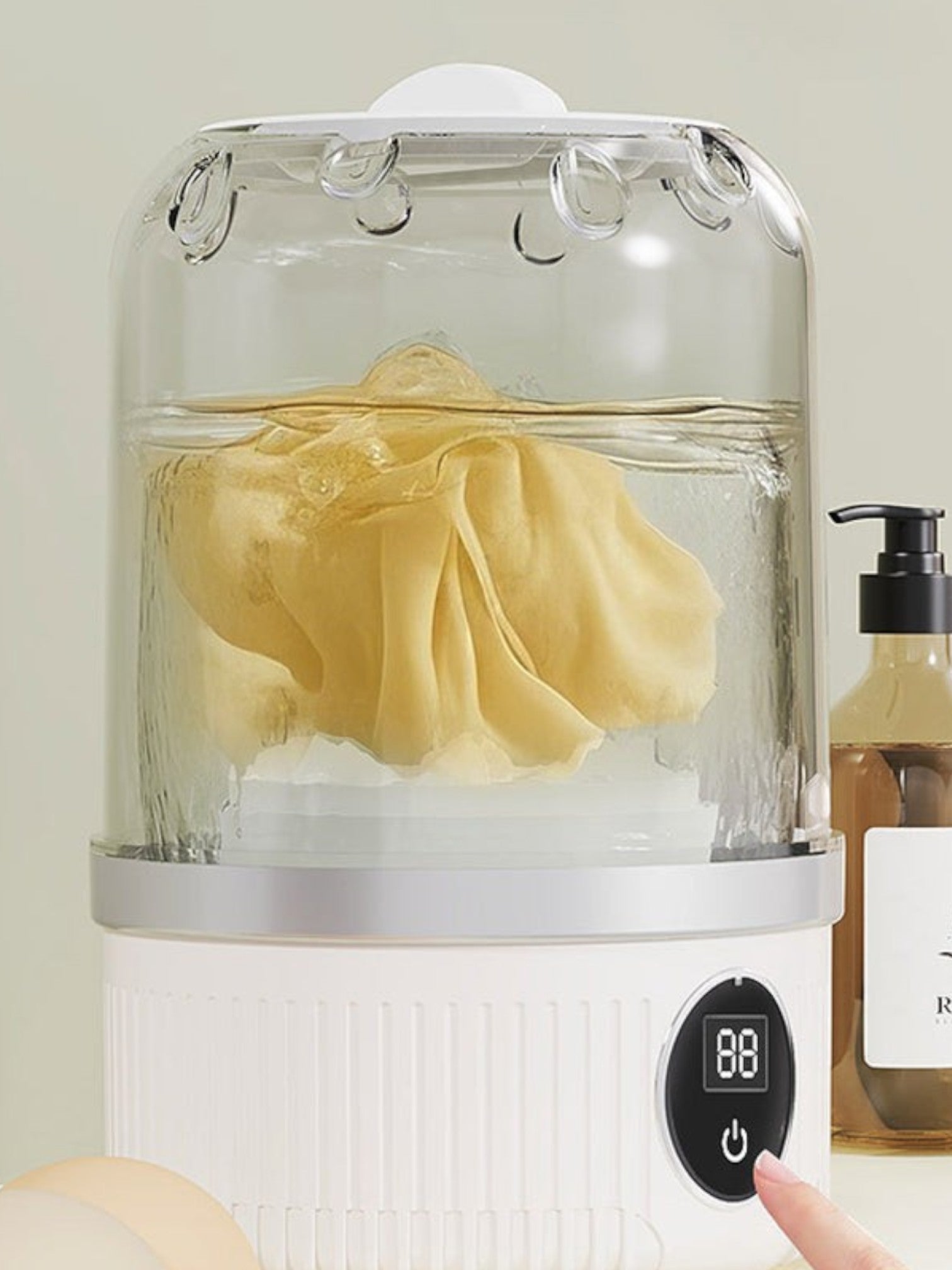 CleanNGo ist deine drahtlose Mini-Waschmaschine für Unterwäsche, Babykleidung und Socken – ideal für Reisen, Camping oder kleine Wohnungen. Mit kabellosem Laden, einem Fassungsvermögen von 1 Liter und einem leistungsstarken Motor bietet sie beeindruckende Reinigungskraft in deinem Handgepäck.