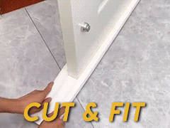 Schieben Sie einfach das Dichtmaterial in den unteren Teil der Tür durch den Schlitz in der Mitte des Dichtstreifens, schneiden Sie es auf die passende Größe, und fertig! Kein ständiges Bücken mehr, um die Türbreite zu messen und nachjustieren.