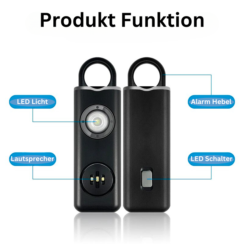 Die Nutzung des persönlichen Geräts ist simpel und unkompliziert. Du kannst es an deinem Schlüsselbund oder in deiner Tasche tragen, sodass es stets griffbereit ist. Im Falle einer bedrohlichen Situation ziehst du einfach den oberen Hebel und der laute Alarm wird sofort ausgelöst.