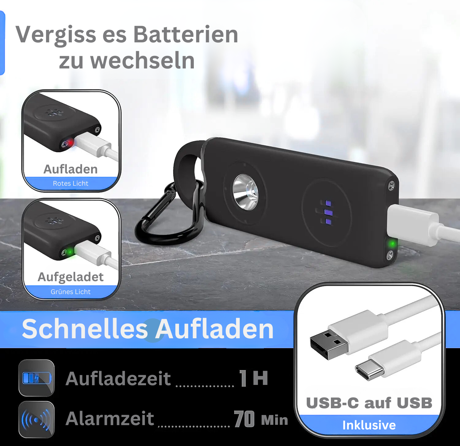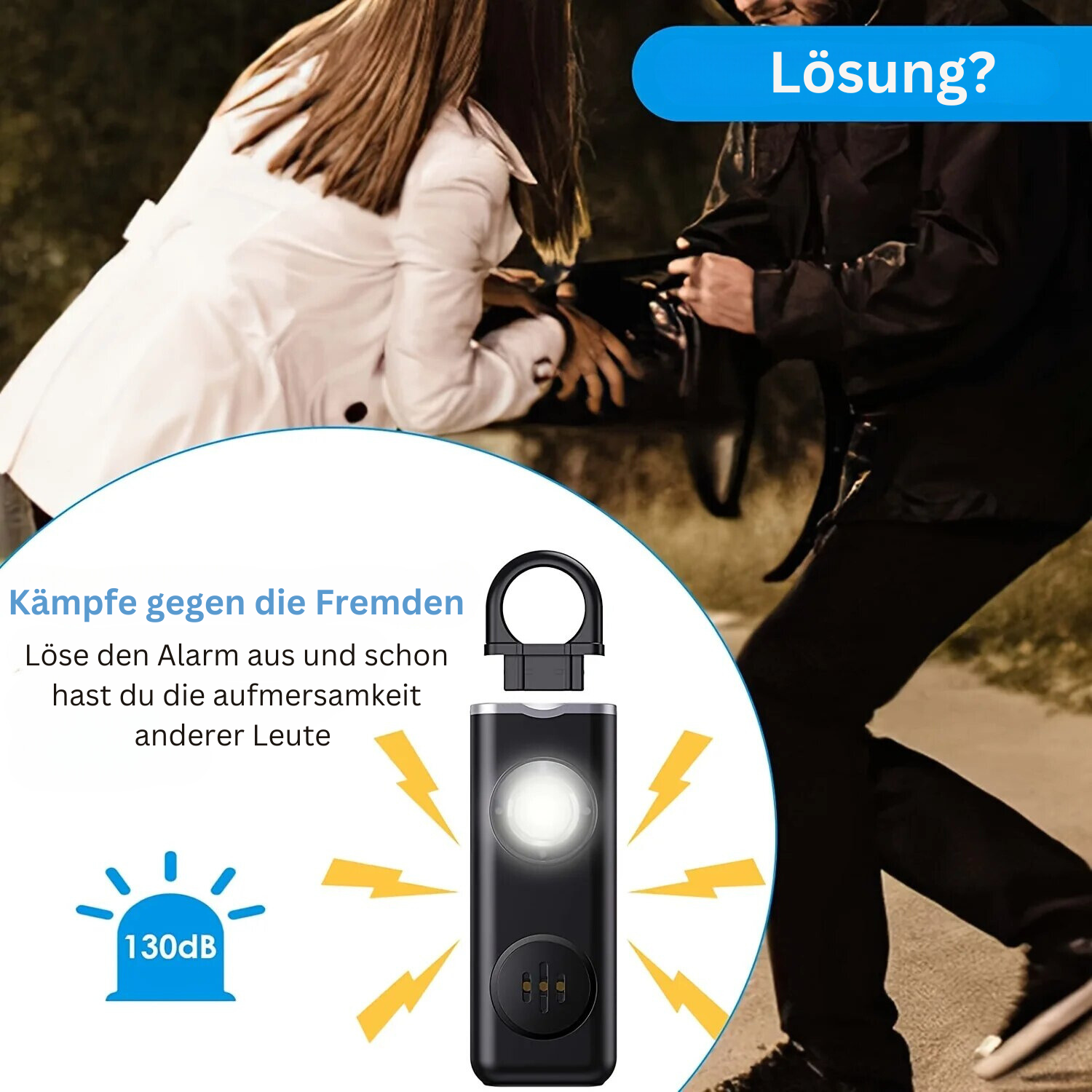 Er gibt dir ein zusätzliches Gefühl von Sicherheit, damit du dich sicherer fühlen kannst, ganz gleich, ob du alleine oder in öffentlichen Verkehrsmitteln unterwegs bist oder in einem unsicheren Viertel lebst.