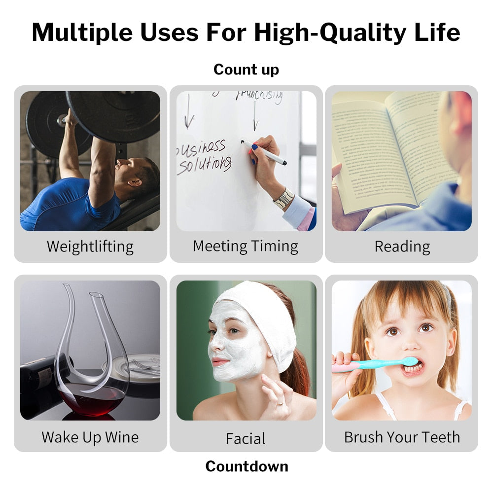 Um die Zeit mühelos einzustellen, drehen Sie schnell für die Minuten und langsamer für den Sekundenzeiger. Das großflächige Design bietet ein hochauflösendes LED-Display, das sowohl positive als auch negative Zeitmessungen anzeigt.