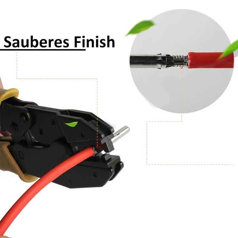 • Professionelles Werkzeug zur Drahtvercrimpung mit einem selbstjustierenden Ratschenmechanismus für mühelose Anwendung.