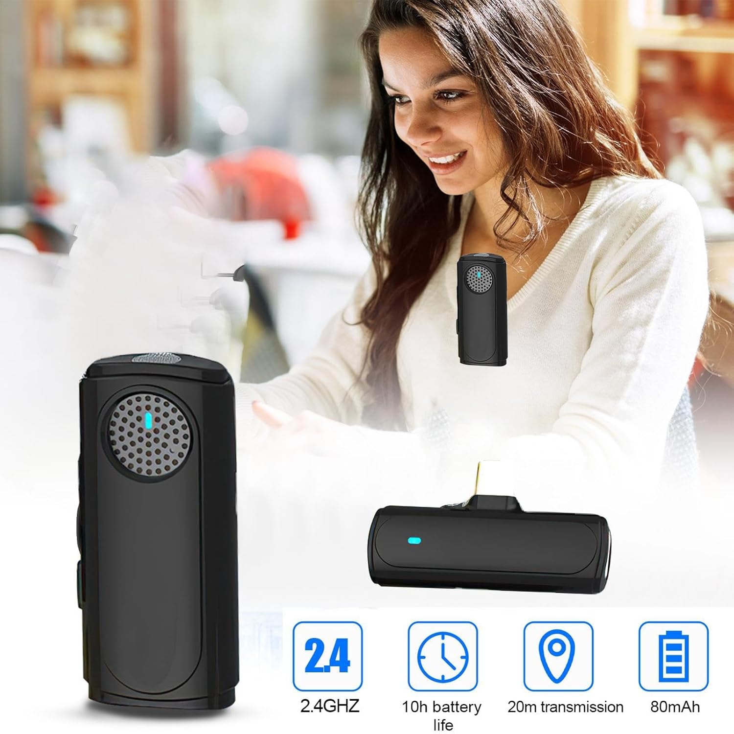 Dieses kabellose Lavaliermikrofon verwendet fortschrittliche Technologien zur Geräuschreduktion in drei Stufen und passt sich automatisch an die Umgebungsgeräusche an, damit Ihre Aufnahmen immer klar und verständlich sind. Die verlustfreie digitale Verarbeitung mit 48 kHz und 16-Bit liefert hochauflösendes Audio und gibt die ursprünglichen Klänge Ihrer Umgebung exakt wieder. Mit einem integrierten, wiederaufladbaren Akku, der für eine langanhaltende Nutzung sorgt, können Sie Vorlesungen, Interviews, Aufführungen oder Livestreams aufnehmen, ohne sich um die Akkuladung kümmern zu müssen. Kompakt, leicht und mit Plug-and-Play-Funktionalität, wurde es für eine mühelose Nutzung mit Smartphones, PCs und Kameras konzipiert.