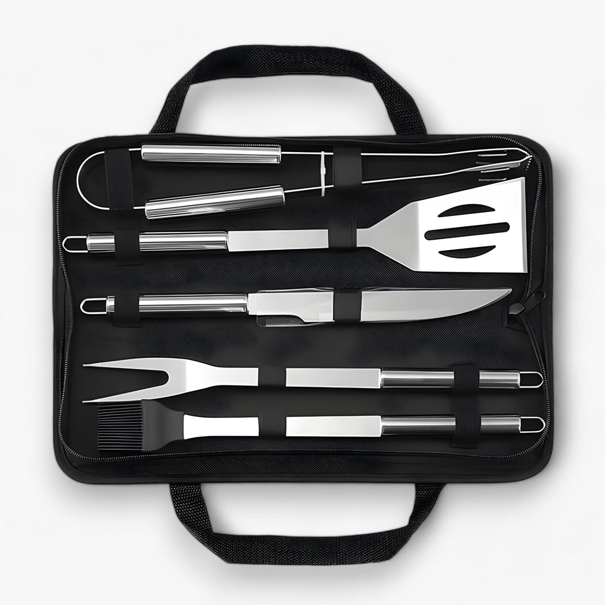 Verwandeln Sie jedes Barbecue in ein nahtloses Kocherlebnis mit einem langlebigen BBQ-Werkzeugset aus Edelstahl. Entworfen für Bequemlichkeit, Sicherheit und Stil bietet dieses All-in-One-Kit die wesentlichen Werkzeuge, die Sie zum Grillen benötigen, egal ob zu Hause, beim Camping oder bei einem Picknick.
