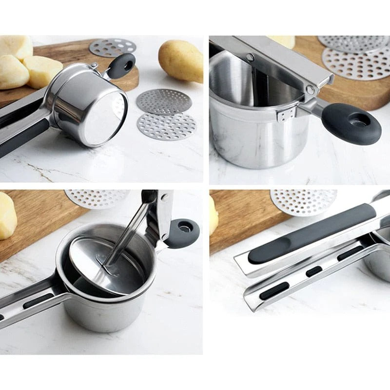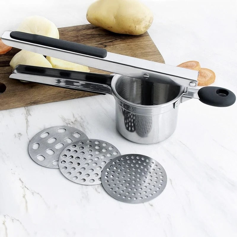 Über Kartoffeln hinaus ist dieses Werkzeug hervorragend für die Verarbeitung von Karotten, Rüben, Kürbis, Tomaten und mehr geeignet – großartig für Saucen, Salsas oder hausgemachte Babynahrung. Es dient auch als Entsafter für weiche Früchte und als Entferner von überschüssiger Feuchtigkeit aus Gemüse vor dem Kochen.