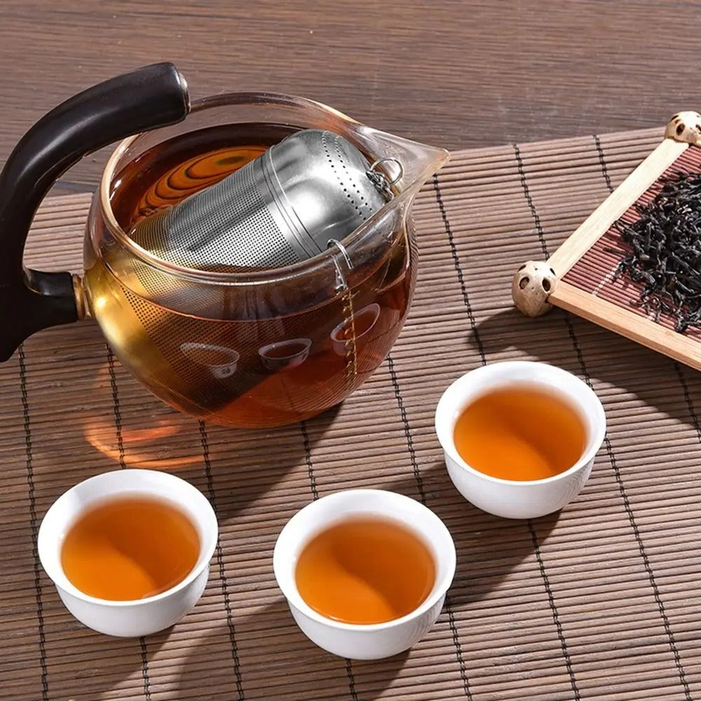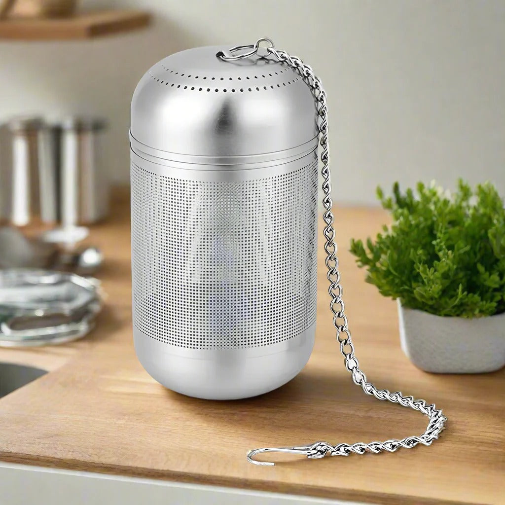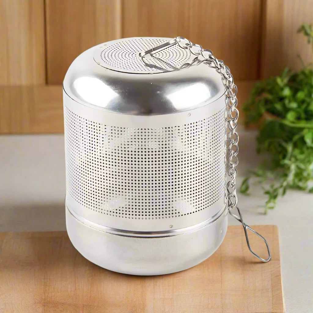 Der Edelstahl-Teewärmer wird Ihr Teekochen verbessern. Dieser robuste und exquisit konstruierte Netzfilter ist ideal zum Filtern von Gewürzen und Suppenzutaten sowie zum Brühen von Kaffee und losen Teeblättern. Sein feines Netz hält Blätter oder Gewürze sicher zurück, während es ein angenehmes Brühen garantiert. Dieser Filter, der mit Teekannen, Wasserkochern oder Tassen funktioniert, ist ein notwendiges Werkzeug für jeden, der Tee und das Kochen liebt. Er ist die ideale Ergänzung für Ihre Küchenutensilien, da er einfach zu bedienen und zu reinigen ist.