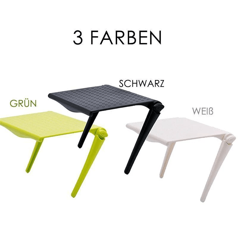 Dieses Regal ist ideal für den täglichen Gebrauch sowie fürs Büro. Es ist zudem kompakt und faltbar, was den Transport äußerst bequem macht. Ob im Büro oder auf Reisen, die Ablage lässt sich mühelos mitnehmen. Sie ist platzsparend und äußerst funktional.
