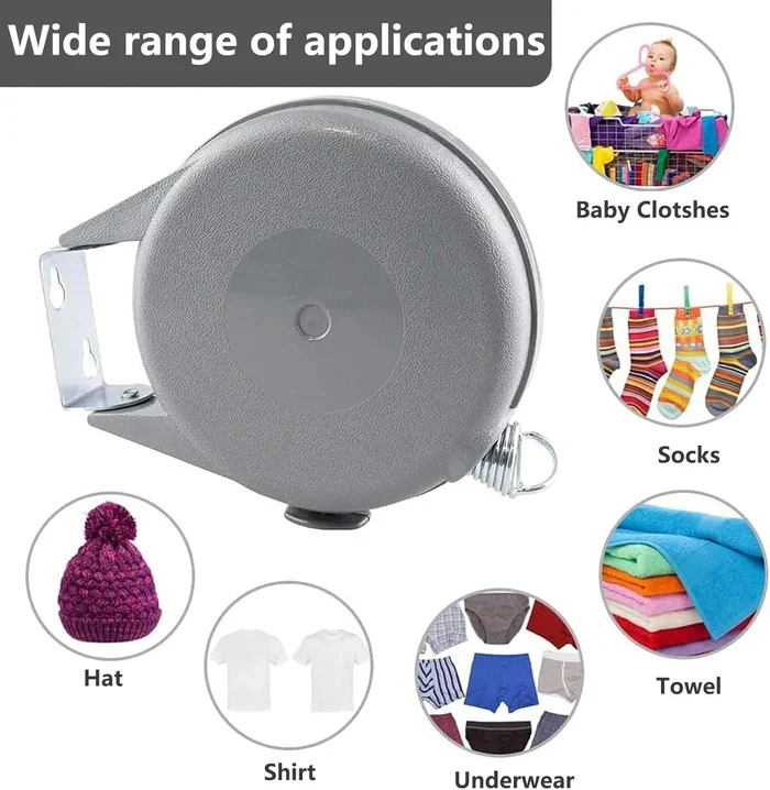 Wenn Sie das Trocknen Ihrer Wäsche abgeschlossen haben, zieht sich das Kabel automatisch in sein kompaktes Gehäuse zurück, schützt es vor schlechtem Wetter und verhindert Verwicklungen. Dieses Merkmal trägt dazu bei, Ihren Raum organisiert zu halten und auf das nächste Trocknen vorbereitet zu sein.