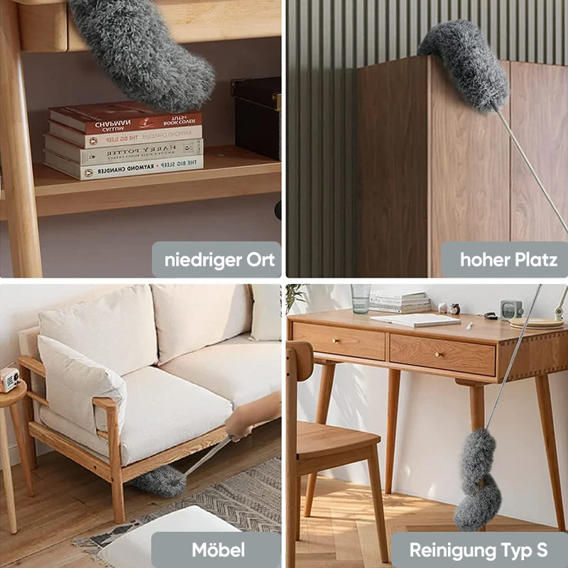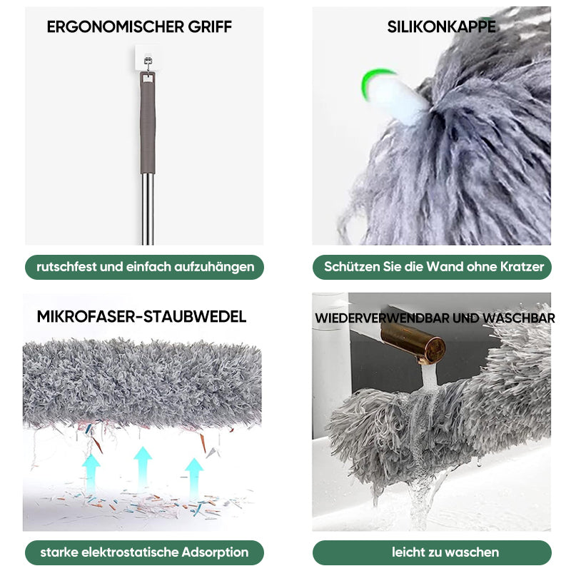 Hochwertige Mikrofaser und Edelstahlstange: Unser Staubwedel besteht aus erstklassigem Mikrofaser-Material und ist mit einer neu gestalteten rostfreien Edelstahlstange ausgestattet, die für ihre Strapazierfähigkeit bekannt ist.