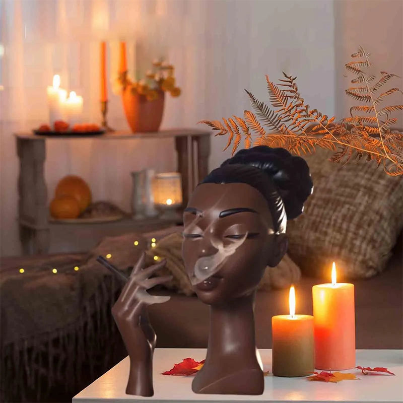 EINZIGARTIGER EFFEKT: Einfach einen Weihrauchkegel in die Öffnung am Hinterkopf platzieren und beobachten, wie der duftende Rauch sanft aus ihren Lippen strömt und einen verführerischen und beruhigenden Effekt erzeugt.