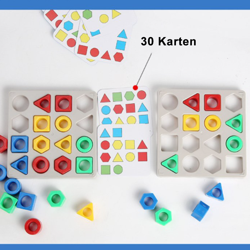 • Produktinhalt: 2 Basisplatten, 32 Bausteine (je 8 in jeder Farbe), 30 Karten