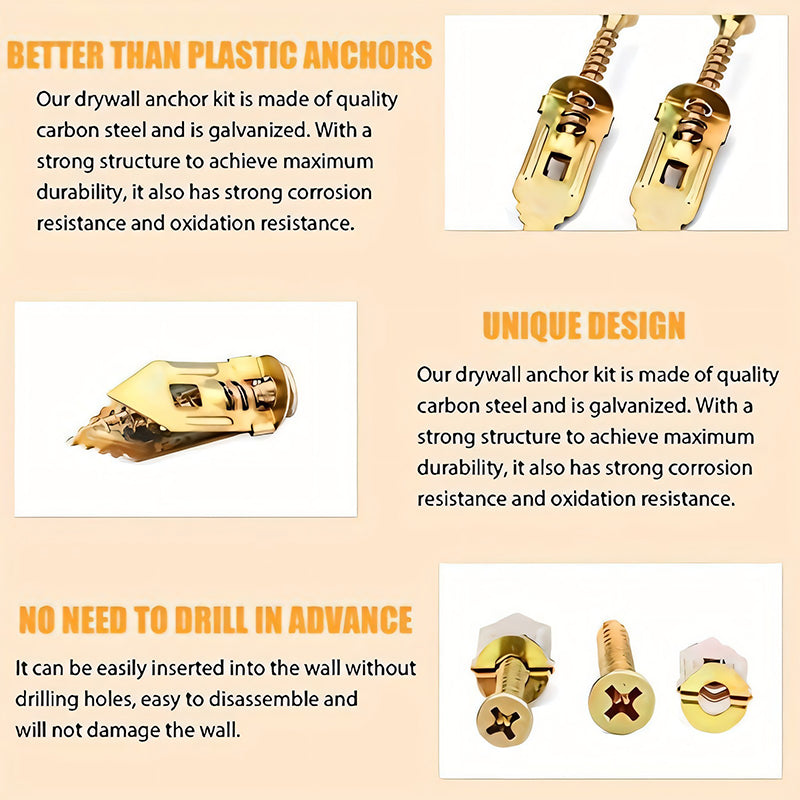 - Gipskarton-Erweiterungsdübel + set aus Hochfesten Zinkschrauben (100 Stück)