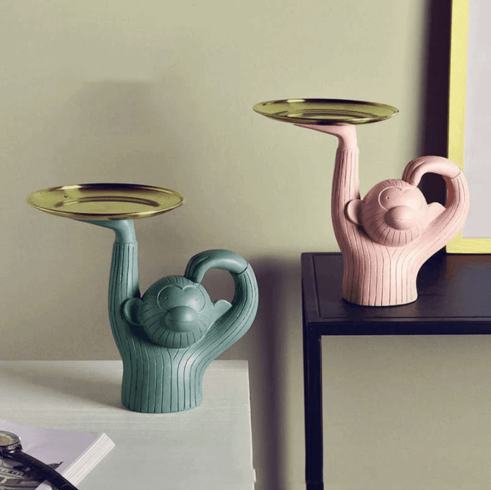 KUNST ORGANIZER - Suchen Sie einen Kunsthalter für Ihr Zuhause oder Ihr Büro? Dies könnte die ideale Lösung für Ihre Bedürfnisse sein. Die Statue präsentiert einen niedlichen Affen, der ein Tablett trägt und auf einen Einsatz von Ihnen wartet.