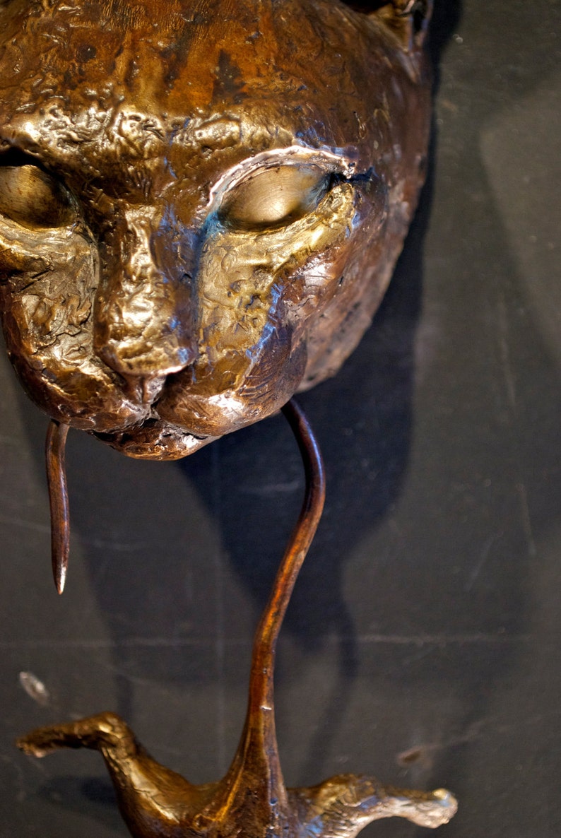 Die Skulptur ist in Lebensgröße (Katzenkopf etwa 10-12 cm in jeder Richtung). Sie lässt sich ganz einfach an einer Haustür mit den beigefügten Messingschrauben anbringen oder auf einem Brett zur Wandmontage anbringen.