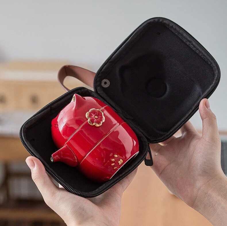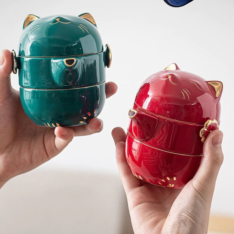 Farbe: Glückskatze, ein Set mit zwei Tassen und einem Behälter – Rot, Glückskatze, ein Set mit zwei Tassen und einem Behälter – Weiß, Glückskatze, ein Set mit zwei Tassen und einem Behälter – Armeegrün