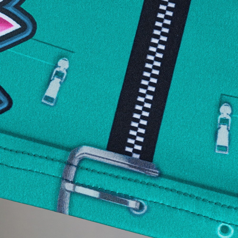 Stylisches Design: Verspieltes Alphabetmuster mit Reißverschlussdetails verleiht einen modernen Kpop-Look.