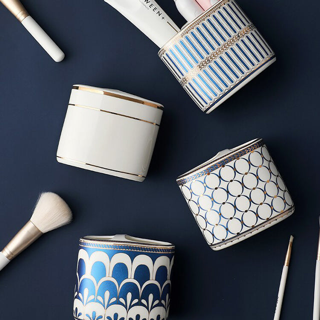 Die hochwertige Keramik sorgt für Langlebigkeit und ein luxuriöses Gefühl. Der Halter bietet reichlich Stauraum für Ihre wichtigsten Badezimmeraccessoires, sodass diese geordnet und leicht zugänglich aufbewahrt werden können.